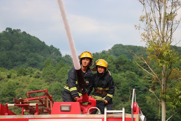 15时,演练开始。根据现场情况,指挥员将作战力量编成侦察组(中队侦察员)、警戒疏散组(厂区保安)、灭火组(中队攻坚组)、冷却组(战斗一班)、供水组(厂区消防负责人员)5个战斗小组。经侦查组报告侦察情况后,大队指挥员果断下令:命令中队攻坚组人员佩戴空气呼吸器和个人防护装备立即使用水枪出水对乙炔罐体及周围进行冷却和稀释;警戒疏散组做好富翔氧气乙炔厂人员、车辆进出警戒工作,禁止无关人员、车辆靠近现场,并对厂区人员及周围群众进行疏散,灭火组利用水枪覆盖着火油罐,实施灭火,冷却组利用水枪冷却毗邻罐体,供水组占据就近消火栓向主战车实施不间断供水。15时45分,经全体参战人员的共同努力,“大火”被彻底扑灭。演练结束后,大队指挥员对此次演练进行讲评。全体指战员要结合此次演练中出现的问题,认真总结原因、分析不足,进一步改进技战术措施,优化战斗编成,同时要求富翔氧气乙炔厂要继续完善自身灭火应急处置预案,提高自救能力,切实提高厂区火灾防控能力。